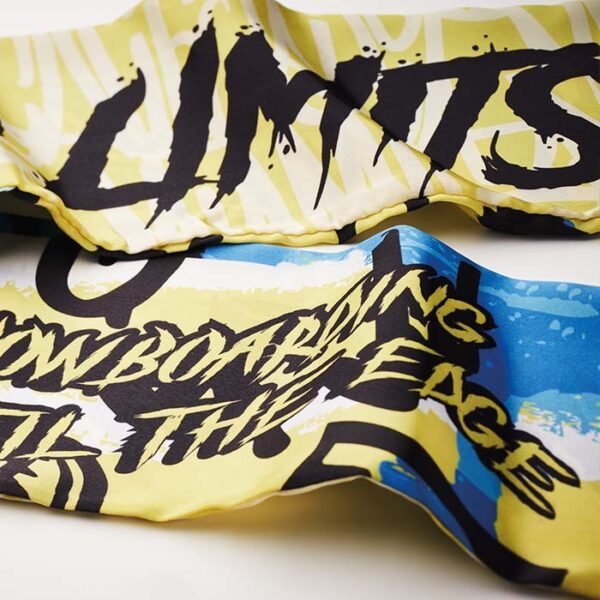 Διαφημιστικό Κασκόλ διπλής στρώσης με κρόσσια κατασκευασμένο από ύφασμα σατέν και εκτύπωση του σχεδίου και των στοιχείων της επιχείρησής σας.