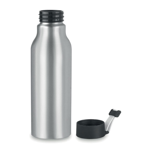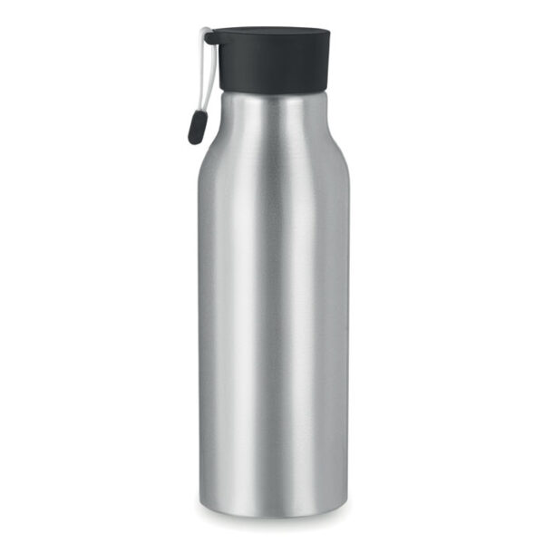 Διαφημιστικό Μπουκάλι μονού τοιχώματος από αλουμίνιο με καπάκι από πλαστικό PΡ με ενσωματωμένη σιλικονούχα λαβή μεταφοράς και εκτύπωση ή ψηφιακή εκτύπωση ή χάραξη laser ή και εκτύπωση sublimation σε διάφορα χρώματα και σχέδια των στοιχείων της επιχείρησής σας. Mε σχεδιασμό αποτροπής διαρροών. Χωρητικότητα: 500ml.