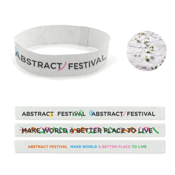 Διαφημιστικό Βραχιόλι Εκδηλώσεων από ανακυκλωμένο χαρτί με σπόρους 80gsm και εκτύπωση του σχεδίου και των στοιχείων της επιχείρησής σας. Μία ιδανική οικολογική λύση για event και συνέδρια.