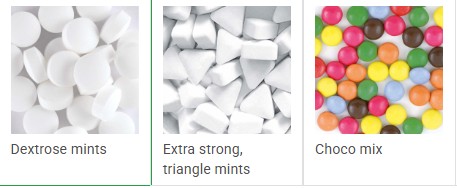 - Γέμιση με καραμέλες μέντας (στρογγυλές ή τριγωνικές) ή σοκολατένια κουφέτα.