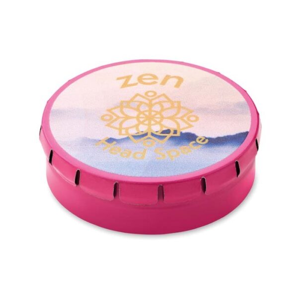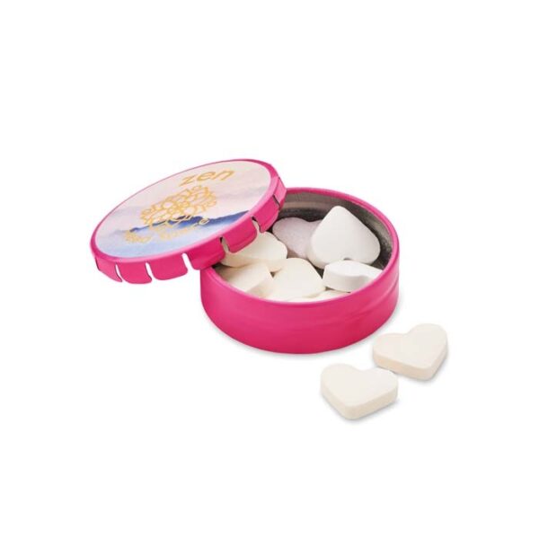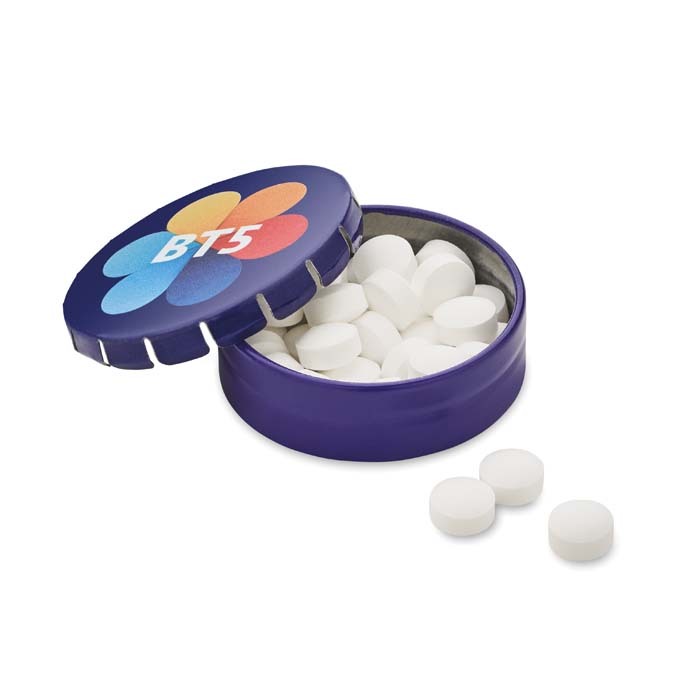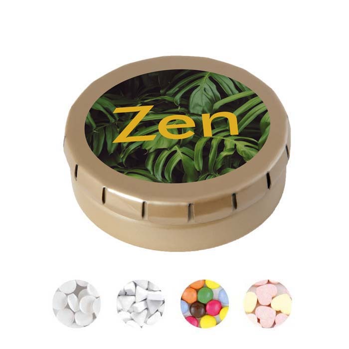 Διαφημιστικό Δοχείο Ζαχαρωτών επαναχρησιμοποιούμενο από αλουμίνιο με εκτύπωση του σχεδίου και των στοιχείων της επιχείρησής σας. Εύκολο άνοιγμα.
