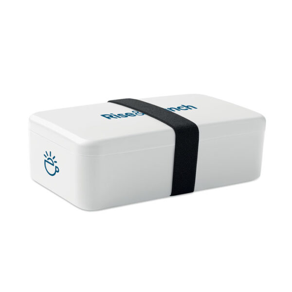 Διαφημιστικό Δοχείο Φαγητού κατασκευασμένο από πλαστικό PP με ελαστική ταινία κλεισίματος από πολυεστέρα PRET και εκτύπωση ή ψηφιακή εκτύπωση των στοιχείων της επιχείρησής σας. Περιλαμβάνει ενιαίο δοχείο μεταφοράς φαγητού χωρητικότητας: 750ml.