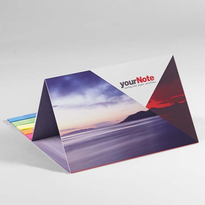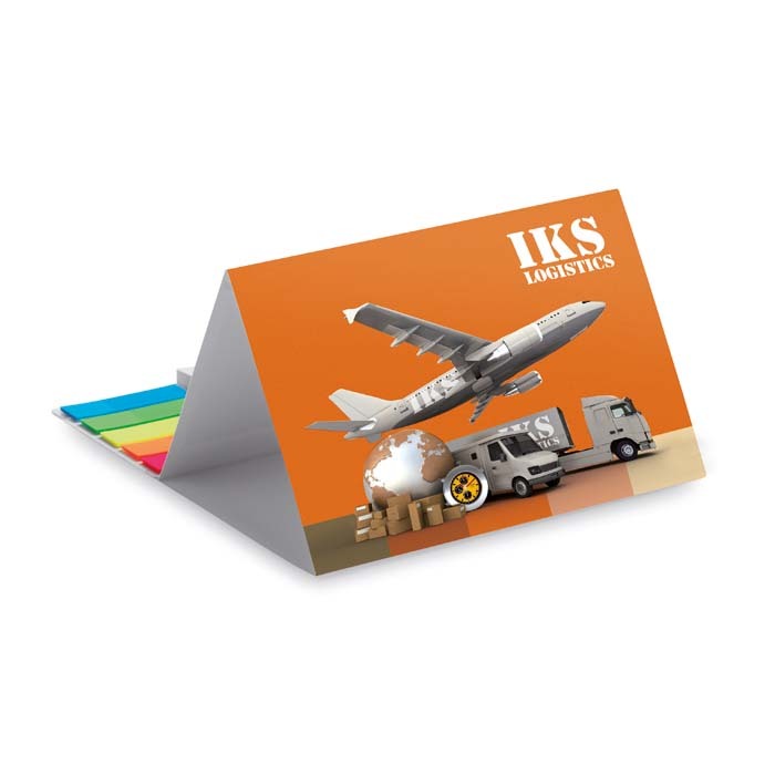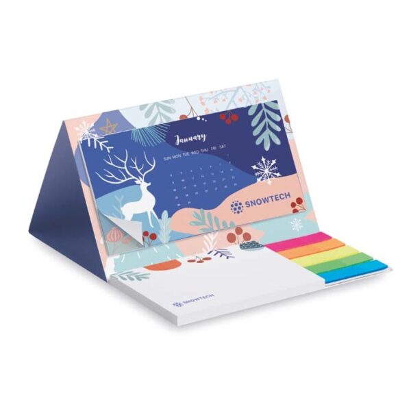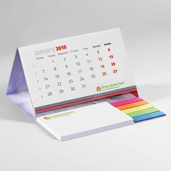 Διαφημιστικό Ημερολόγιο επιτραπέζιο με μαλακό εξώφυλλο από χαρτί και εκτύπωση του σχεδίου και των στοιχείων της επιχείρησής σας. Αποτελείται από 12 ημερολογιακά φύλλα, 50 αυτοκόλλητα σημειώσεων και 20 σελιδοδείκτες 5 χρωμάτων.