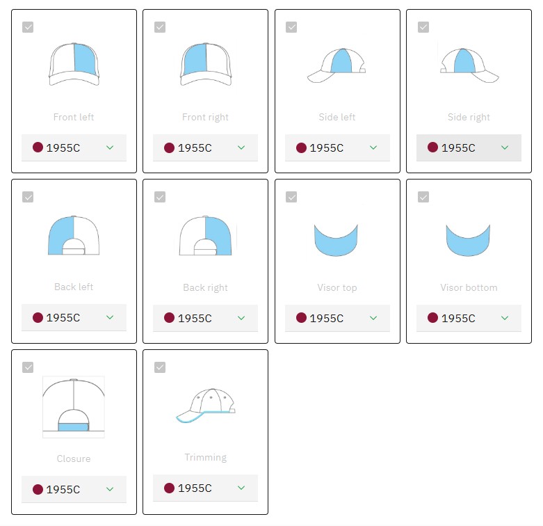 - Εκτύπωση λογοτύπου μπροστά, στα πλαϊνά, στην ταινία εφίδρωσης, στο γείσο ή και στο κούμπωμα.