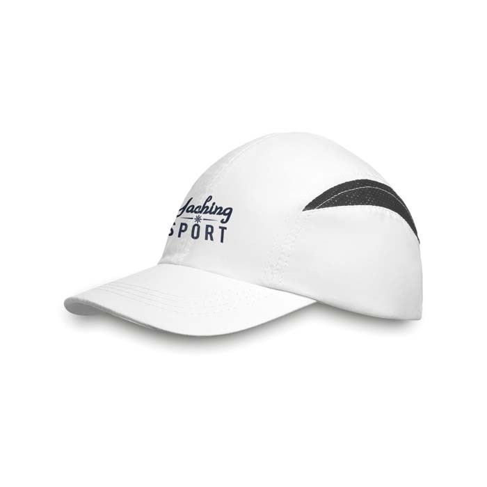 Διαφημιστικό Καπέλο 4φυλλο από ελαφρύ ύφασμα μικροϊνών με διάτρητο εσωτερικό και εκτύπωση του σχεδίου και των στοιχείων της επιχείρησής σας. Διαθέτει προ-καμπυλωτό γείσο με ραφές, ασορτί βαμβακερή ταινία εφίδρωσης και ρυθμιζόμενο λουράκι για να εξασφαλίζει εξατομικευμένη και άνετη εφαρμογή.