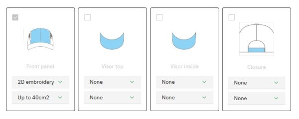 - Εκτύπωση λογοτύπου μπροστά, στο γείσο ή και στο κούμπωμα.