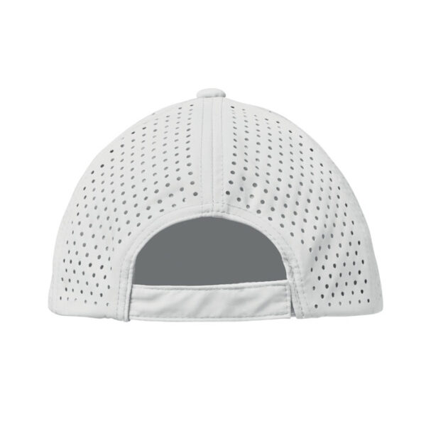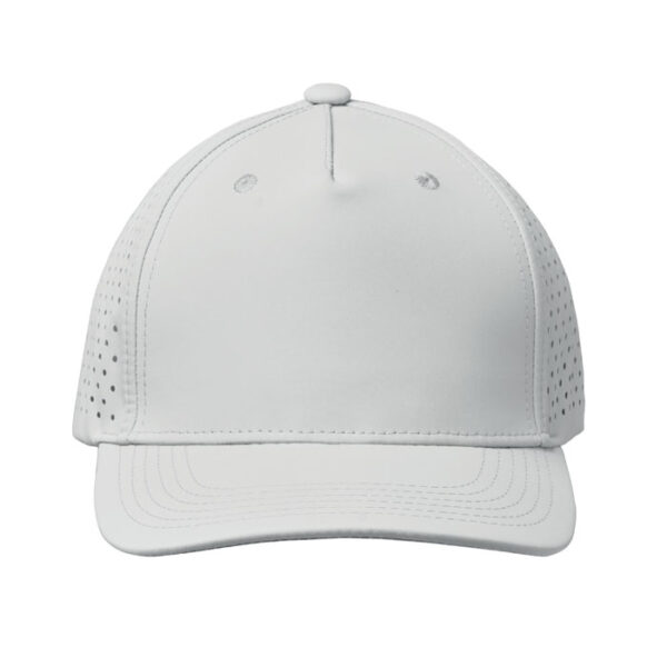 Διαφημιστικό Καπέλο 5-φυλλο από πολυεστέρα PRET 130 gr/m² με διάτρυτο πίσω μέρος και θερμομεταφορά ή ψηφιακή θερμομεταφορά των στοιχείων της επιχείρησής σας. Περιλαμβάνει 2 κεντητές τρύπες εξαερισμού και ρυθμιζόμενο κλείσιμο Velchro. Αδιάβροχο και γρήγορο στέγνωμα.