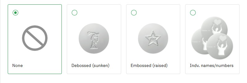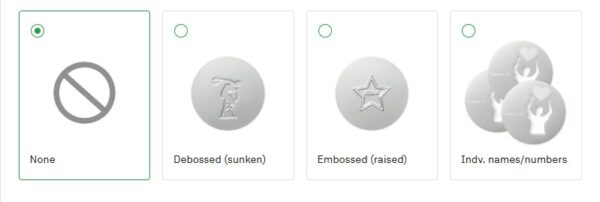 - Δυνατότητα εκτύπωσης λογοτύπου στο πίσω μέρος με εμβάθυνση ή ανάδυση ή με ατομικό όνομα ανά μετάλλιο.