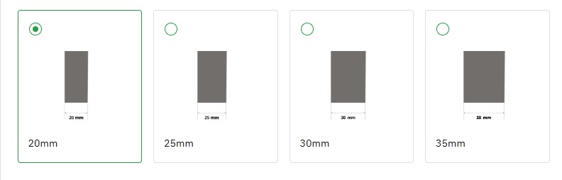 - Πάχος κορδέλας σε 20mm ή 25mm ή 30mm ή 35mm.