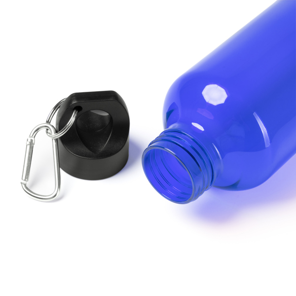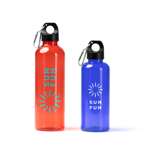 Διαφημιστικό Μπουκάλι από πλαστικό PRET με μεταξοτυπία ή ψηφιακή εκτύπωση των στοιχείων της επιχείρησής σας. Περιλαμβάνει βιδωτό καπάκι και λαβή μεταφοράς με καραμπίνερ. Χωρητικότητα: 580ml.