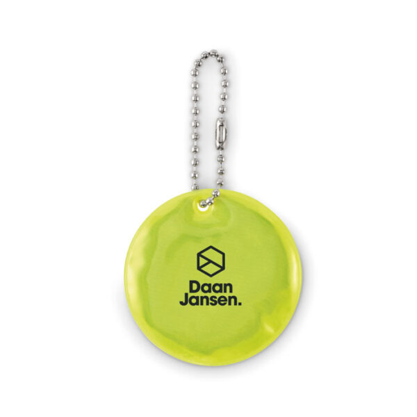 Διαφημιστικό Μπρελόκ σε στρογγυλό σχέδιο κατασκευασμένο από ανακλαστικό πολυεστέρα PVC με εκτύπωση των στοιχείων της επιχείρησής σας.