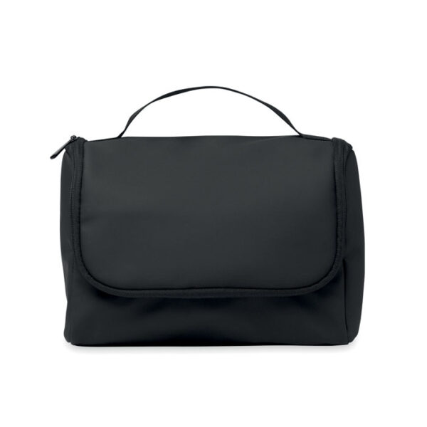 Διαφημιστικό Νεσεσέρ από μαλακή δερματίνη PU και πολυεστέρα 210D RPET με κλείσιμο φερμουάρ και μεταξοτυπία των στοιχείων της επιχείρησής σας. Διαθέτει εσωτερικό γάντζο για κρέμασμα, μεγάλη κύρια θήκη με εσωτερικό φερμουάρ και διχτυωτό πλέγμα, καθώς και μία επιπλέον διχτυωτή θήκη στο καπάκι. Κλείσιμο με διπλό φερμουάρ και λαβή μεταφοράς.
