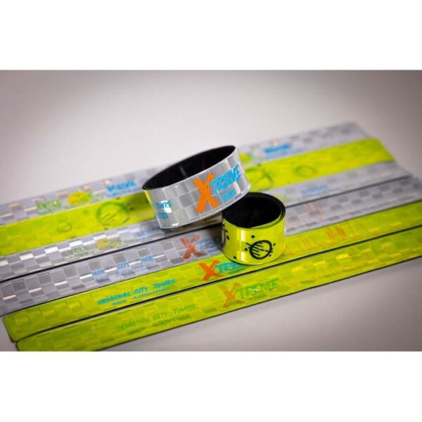 Διαφημιστικό Περικάρπιο Εκδηλώσεων (wristband) αναδιπλούμενο κατασκευασμένο από μέταλλο με εξωτερική καρό επιφάνεια από ανακλαστικό πολυεστέρα PVC και εκτύπωση του σχεδίου και των στοιχείων της επιχείρησής σας. Μαύρη βελούδινη εσωτερική επίστρωση. Iδανικό για εκδηλώσεις ή αθλητικές δραστηριότητες.