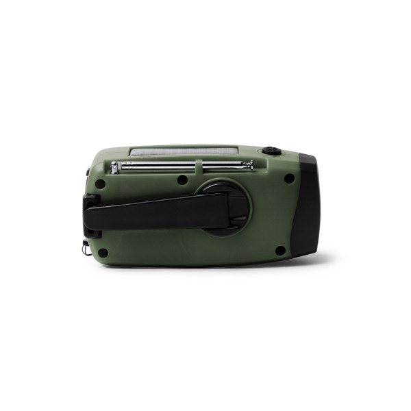 Διαφημιστικό Ραδιόφωνο έκτακτης ανάγκης με δυναμό από πλαστικό ABS και εκτύπωση των στοιχείων της επιχείρησής σας. Ο μηχανισμός δυναμό και ο ηλιακός συλλέκτης του παρέχουν ασφάλεια, καθώς οι μηχανισμοί αυτοί τού επιτρέπουν να λειτουργεί χωρίς ηλεκτρισμό σε καταστάσεις έκτακτης ανάγκης. Διαθέτει φακό LED και σειρήνα SOS για τις πιο απαιτητικές συνθήκες, καθώς και κεραία για ραδιοφωνική χρήση. Διαθέτει επίσης, ηχείο 2W και ενσωματωμένο power bank 2.000mAh, θύρα εισόδου USB και έξοδο Type C.