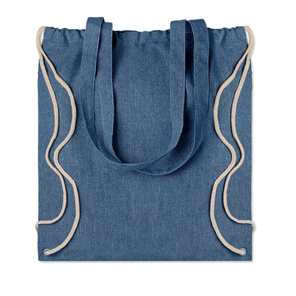 Διαφημιστικό Σακίδιο πλάτης με κορδόνια κατασκευασμένο από 20% ανακυκλωμένο βαμβάκι 140 g/m² και 80% πολυεστέρα PRET με εκτύπωση ή θερμομεταφορά ή και ψηφιακή θερμομεταφορά των στοιχείων της επιχείρησής σας. Διαθέτει μακριές λαβές μεταφοράς. Το παρόν προϊόν μπορεί να συρρικνωθεί μετά την εκτύπωση.