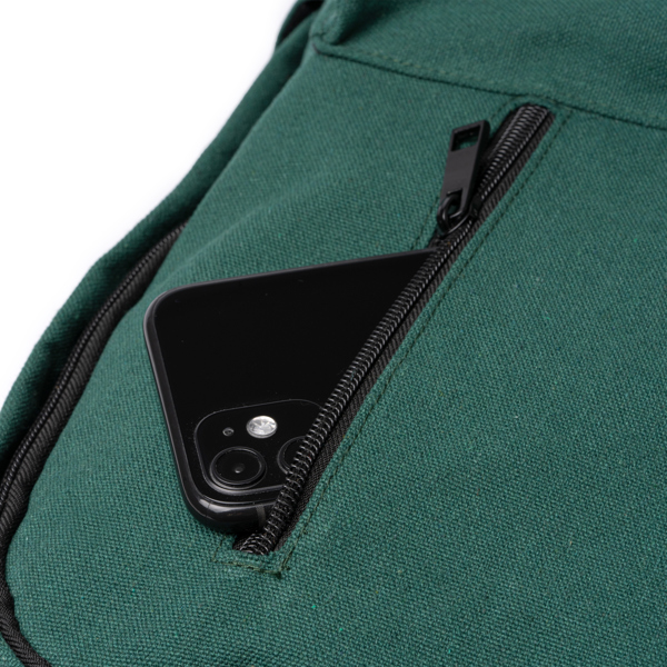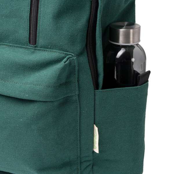 Διαφημιστικό Σακίδιο από ανακυκλωμένο βαμβάκι 330 g/m² με μεταξοτυπία ή θερμομεταφορά των στοιχείων σας. Διαθέτει μεγάλη κύρια θήκη με εσωτερική τσέπη για φορητό υπολογιστή 15 ιντσών, 2 εξωτερικές τσέπες με φερμουάρ και 2 πλαϊνές τσέπες. Λουριά και πλάτη με επένδυση. Χωρητικότητα: 20L.