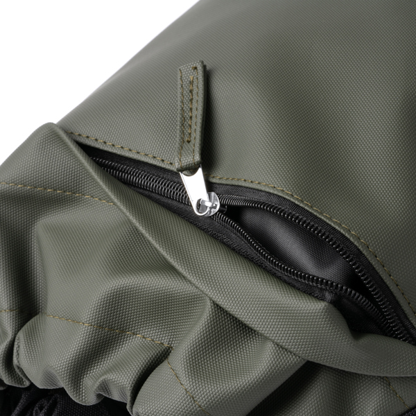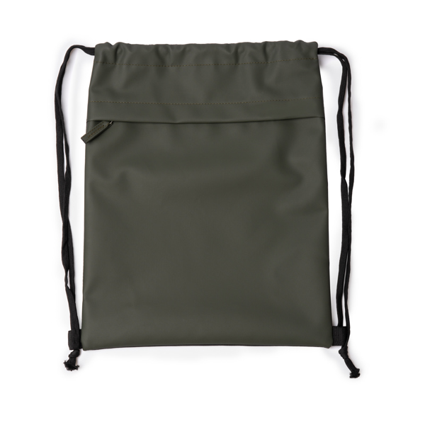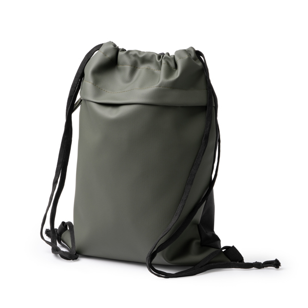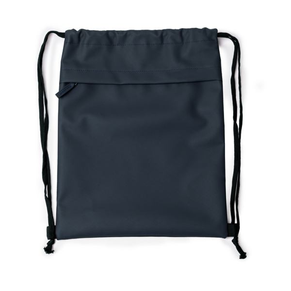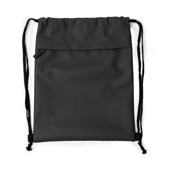 Διαφημιστικό Σακίδιο πλάτης με κορδόνια κατασκευασμένο από πολυεστέρα 600D και δερματίνη PU με θερμομεταφορά των στοιχείων της επιχείρησής σας. Πρακτική μπροστινή τσέπη με φερμουάρ.