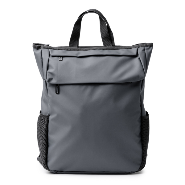 Διαφημιστικό Σακίδιο από δερματίνη PU με φερμουάρ και θερμομεταφορά των στοιχείων της επιχείρησής σας. Διαθέτει μεγάλη εσωτερική θήκη με αφαιρούμενη τσέπη για φορητό υπολογιστή 15 ιντσών. Εξωτερικό κάλυμμα με τσέπη με διπλό φερμουάρ και 2 πλαϊνές τσέπες με δίχτυ. Λουριά και πλάτη με επένδυση. Χωρητικότητα: 20L.