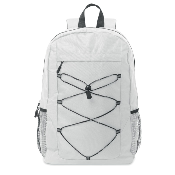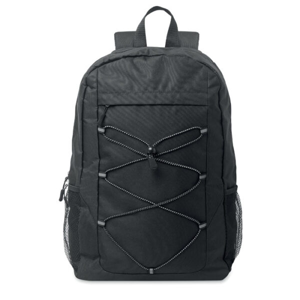 Διαφημιστικό Σακίδιο πλάτης από 600D πολυεστέρα PRET με εκτύπωση ή θερμομεταφορά ή και ψηφιακή θερμομεταφορά των στοιχείων της επιχείρησής σας. Διαθέτει κύρια θήκη και μπροστινή τσέπη με κλείσιμο φερμουάρ. Μπροστινό ελαστικό κορδόνι bungee και πλαϊνές διχτυωτές τσέπες. Ιμάντες πλάτης και ώμου με επένδυση.