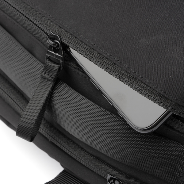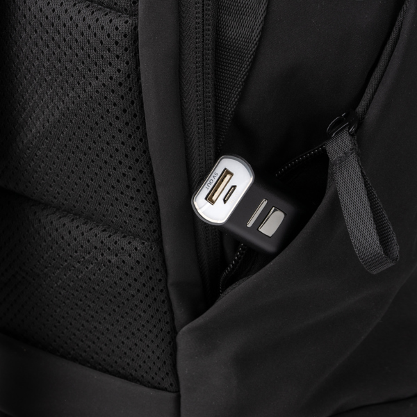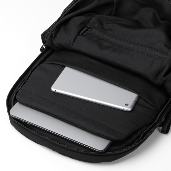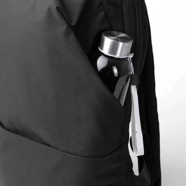 Διαφημιστικό Σακίδιο πλάτης από πολυεστέρα 150D με θερμομεταφορά των στοιχείων της επιχείρησής σας. Στο εσωτερικό του, αποτελείται από μια κύρια θήκη με διπλή τσέπη με επενδυμένο διαχωριστικό, σχεδιασμένο για τη μεταφορά φορητών υπολογιστών έως 17 ιντσών, καθώς και μία μικρότερη τσέπη με φερμουάρ. Εξωτερικά διαθέτει μία τσέπη με αόρατο φερμουάρ για τη μεταφορά μικρότερων αντικειμένων, καθώς και δύο αόρατες τσέπες στα πλαϊνά. Περιλαμβάνει λουράκι για μεταφορά τρόλεϊ., όπως επίσης λαβές και ώμους με επένδυση για μεγαλύτερη άνεση. Χωρητικότητα: 28L