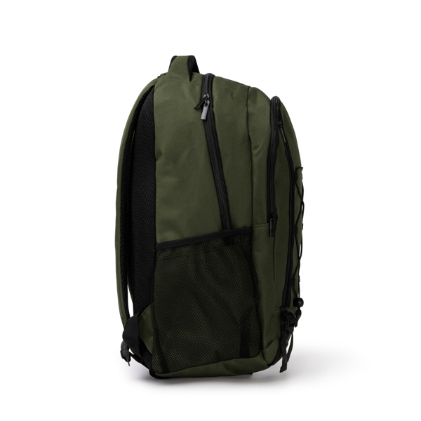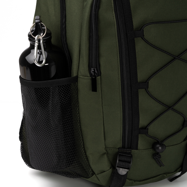 Διαφημιστικό Σακίδιο πλάτης από πολυεστέρα 600D με θερμομεταφορά ή κέντημα των στοιχείων της επιχείρησής σας. Αποτελείται από δύο κύριες θήκες, με τη μία εξ αυτών για μεταφορά φορητού υπολογιστή 16 ιντσών, μπροστινή θήκη με κορδόνια και κλείσιμο με φερμουάρ, καθώς και δύο πλαϊνές διχτυωτές τσέπες για μπουκάλια. Χειρολαβή και πλάτη με επένδυση. Χωρητικότητα: 23L.