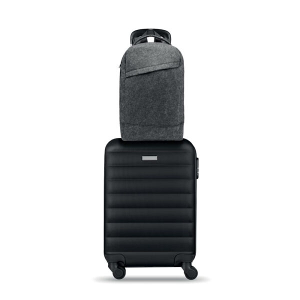 Διαφημιστικό Σακίδιο από τσόχα ανακυκλωμένου πολυεστέρα PRET με εκτύπωση ή θερμομεταφορά ή και ψηφιακή θερμομεταφορά των στοιχείων της επιχείρησής σας. Διαθέτει κύρια θήκη για laptop 13 ιντσών και μπροστινή τσέπη με κλείσιμο φερμουάρ. Περιλαμβάνει ακόμη, ιμάντα διέλευσης αποσκευών και ιμάντες μεταφοράς για τοποθέτηση στην πλάτη.