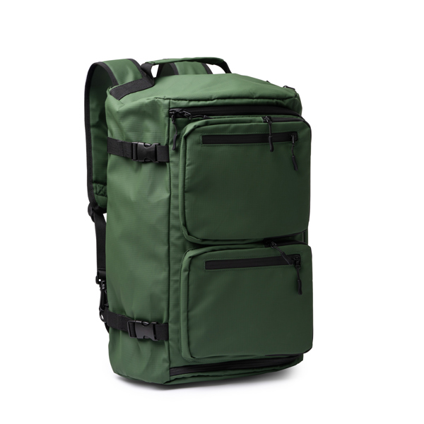 Διαφημιστικό Σακίδιο πολυλειτουργικό και αδιάβροχο από δερματίνη PU και πολυεστέρα ripstop 600D με μεταξοτυπία ή θερμομεταφορά των στοιχείων της επιχείρησής σας. Διαθέτει μεγάλη κύρια θήκη με πλήρες άνοιγμα, πολλαπλές εξωτερικές τσέπες και θήκη υποδημάτων με αδιάβροχο φερμουάρ. Ενισχυμένη λαβή. Περιλαμβάνει ενισχυμένους ιμάντες πλάτης και ρυθμιζόμενο ιμάντα ώμου για εύκολη μεταφορά και εναλλαγή σε λειτουργία σάκου.
