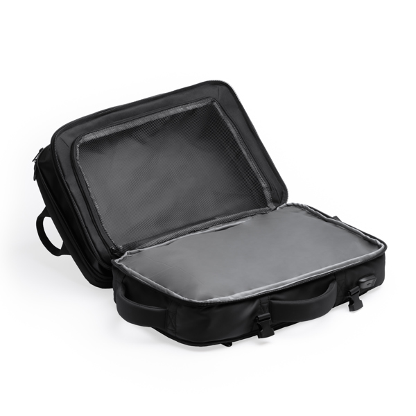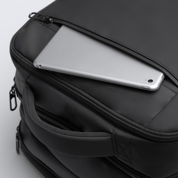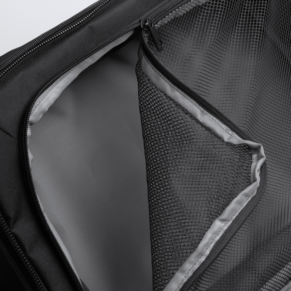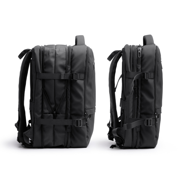 Διαφημιστικό Σακίδιο Ταξιδιού τροχήλατο από δερματίνη PU με μεταξοτυπία ή ψηφιακή θερμομεταφορά των στοιχείων της επιχείρησής σας. Περιλαμβάνει εξωτερική μπροστινή τσέπη με κλείσιμο με φερμουάρ. Κύριο διαμέρισμα με παραγεμισμένη εσωτερική τσέπη για φορητό υπολογιστή 17 ιντσών για μεγαλύτερη ασφάλεια. Εξοπλισμένο με αντικλεπτικές τσέπες στην αριστερή χειρολαβή και την πλάτη, καθώς και ιμάντα διέλευσης αποσκευών. Πλάτη και χειρολαβές με επένδυση. Χωρητικότητα: 40L.