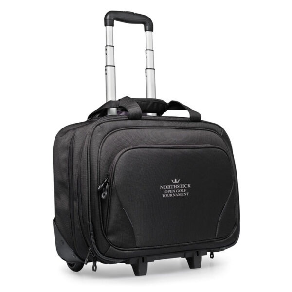 Διαφημιστικό Σακίδιο τροχήλατο επαγγελματικό από πολυεστέρα 1680D PRET με εκτύπωση ή ψηφιακή θερμομεταφορά ή και θερμομεταφορά των στοιχείων της επιχείρησής σας. Διαθέτει κύρια θήκη για laptop 17 ιντσών και θήκη για tablet 10 ιντσών με επιμέρους τσέπες. Κλείσιμο με φερμουάρ.