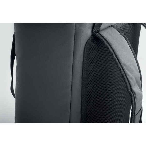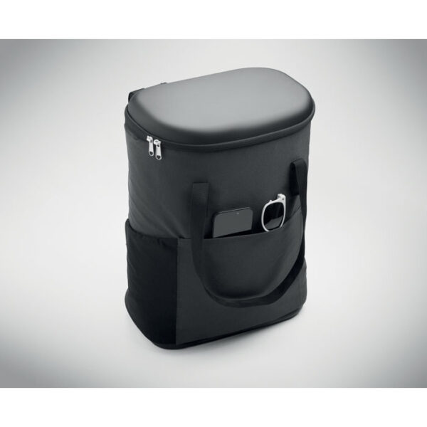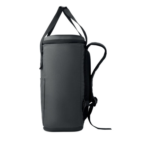 Διαφημιστικό Σακίδιο-Ψυγείο από αδιάβροχο πολυεστέρα 600D RPET με μεταξοτυπία ή θερμομεταφορά ή και ψηφιακή θερμομεταφορά των στοιχείων της επιχείρησής σας. Διαθέτει κύρια θήκη με εσωτερική επίστρωση από πολυεστέρα PEVA και πολυεστερικό αφρό PE, διαμορφωμένο καπάκι κλεισίματος, μπροστινή τσέπη με κλείσιμο φερμουάρ, πλαϊνές διχτυωτές τσέπες και διχτυωτή πλάτη με ενίσχυση. Ιμάντες μεταφοράς ώμου και πλάτης. Χωρητικότητα: 20L.