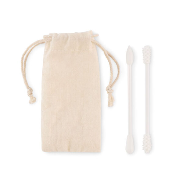 Διαφημιστικό Σετ Επαναχρησιμοποιούμενες Πατονέτες με μεταξοτυπία ή θερμομεταφορά ή και ψηφιακή θερμομεταφορά των στοιχείων της επιχείρησής σας. Περιλαμβάνει 2 επαναχρησιμοποιούμενα και πλενόμενα τεμάχια με σιλικονούχα λαβή και άκρη από βαμβάκι με 3 διαφορετικές κεφαλές.