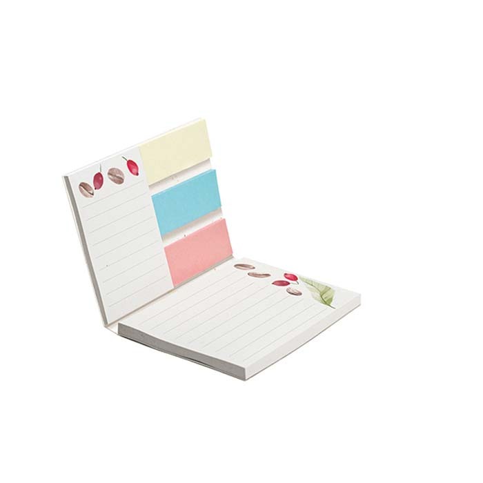 Διαφημιστικό Σημειωματάριο ορθογώνιο με μαλακό εξώφυλλο από ανακυκλωμένο χαρτί με υπολείμματα καφέ και λευκά αυτοκόλλητα χαρτάκια σημειώσεων με γραμμές από ανακυκλωμένο χαρτί 80gsm και εκτύπωση ενός ή περισσότερων χρωμάτων του σχεδίου και των στοιχείων της επιχείρησής σας. Διαθέτει 75 φύλλα σημειώσεων (25 μικρά διαστάσεων: 48mm x 72mm και 50 μεγάλα διαστάσεων: 100mm x 72mm) και 75 σελιδοδείκτες 3 χρωμάτων (25 σε κάθε χαρτί) από ανακυκλωμένο χαρτί.