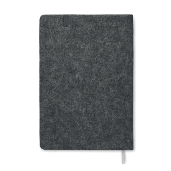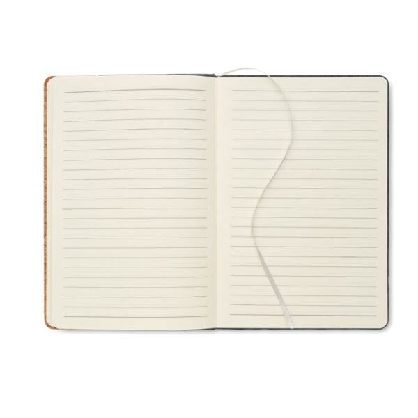 Διαφημιστικό Σημειωματάριο Α5 με εξώφυλλα κατασκευασμένα από τσόχα RPET και φελλό με εκτύπωση ή χάραξη laser ή θερμομεταφορά ή και ψηφιακή θερμομεταφορά των στοιχείων της επιχείρησής σας. Διαθέτει 160 σελίδες ανακυκλωμένου χαρτιού με γραμμές (80 φύλλα), σελιδοδείκτη, ελαστική στυλοθήκη στο μπροστινό μέρος και ελαστικό ιμάντα κλεισίματος.