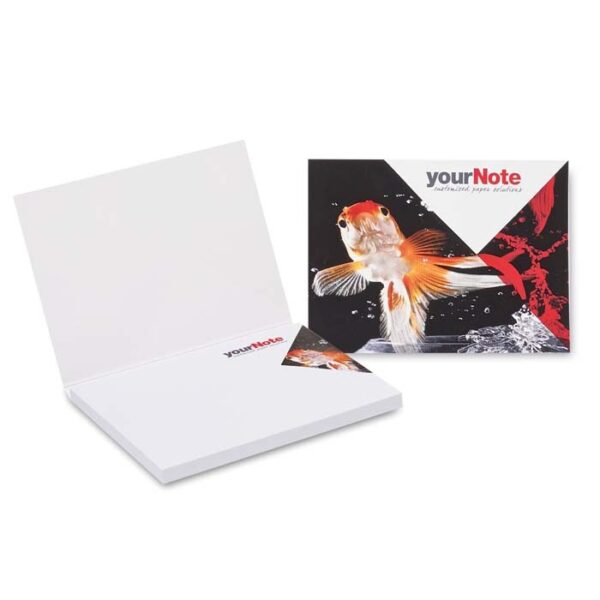 Διαφημιστικό Σημειωματάριο ορθογώνιο με μαλακό εξώφυλλο και λευκά αυτοκόλλητα χαρτάκια σημειώσεων 80gsm με εκτύπωση σε αυτά ενός ή περισσότερων χρωμάτων του σχεδίου και των στοιχείων της επιχείρησής σας. Διαθέτει 50 φύλλα σημειώσεων.