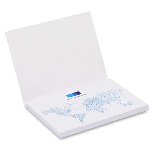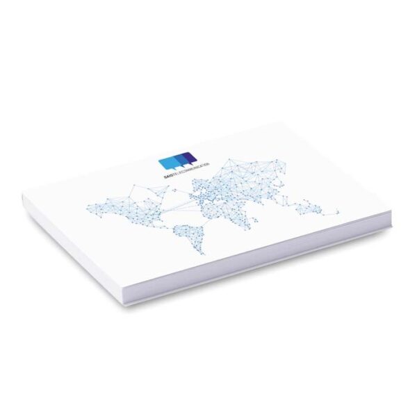 Διαφημιστικό Σημειωματάριο ορθογώνιο με μαλακό εξώφυλλο και λευκά αυτοκόλλητα χαρτάκια σημειώσεων 80gsm με εκτύπωση σε αυτά ενός ή περισσότερων χρωμάτων του σχεδίου και των στοιχείων της επιχείρησής σας. Διαθέτει 100 φύλλα σημειώσεων.