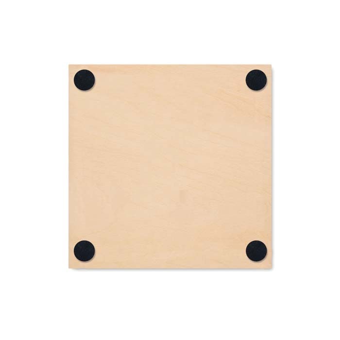 Διαφημιστικό Σουβέρ τετράγωνου σχήματος κατασκευασμένο από ξύλο κόντρα πλακέ με εκτύπωση του σχεδίου και των στοιχείων της επιχείρησής σας. Διαθέτει αντιολισθητικές σιλικονούχες βάσεις στο πίσω μέρος.