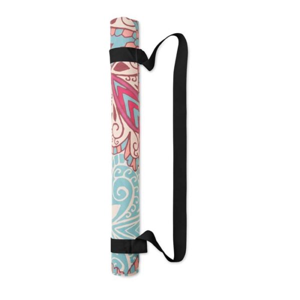 Διαφημιστικό Στρώμα Γιόγκα κατασκευασμένο από μικροϊνες με σουέτ υφή και αντιολισθητική λαστιχένια βάση με εκτύπωση του σχεδίου και των στοιχείων της επιχείρησής σας. Ιμάντας μεταφοράς.