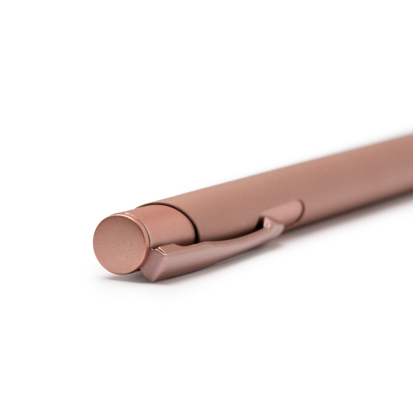 Διαφημιστικό Στυλό με κουμπί, κατασκευασμένο από μέταλλο με ματ φινίρισμα και εκτύπωση ή εκτύπωση laser ή και ψηφιακή εκτύπωση των στοιχείων της επιχείρησής σας. Περιλαμβάνει επαναγεμιζόμενο δοχείο μελανιού μεγάλου μεγέθους.