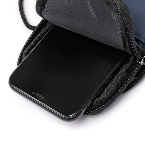 Διαφημιστικό Τσαντάκι από δερματίνη PU με θερμομεταφορά των στοιχείων της επιχείρησής σας. Διαθέτει κύρια εσωτερική θήκη με κλείσιμο φερμουάρ και εξωτερική τσέπη. Περιλαμβάνεται λουράκι μεταφοράς.