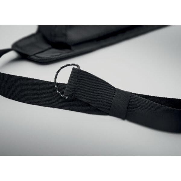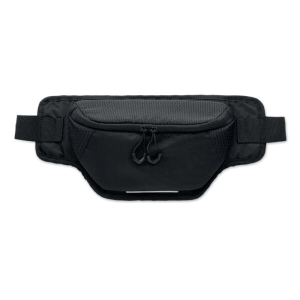 Διαφημιστικό Τσαντάκι Μέσης από αδιάβροχο ύφασμα νάιλον 420D και εσωτερική επίστρωση πολυεστέρα 210D PRET με εκτύπωση ή θεμομεταφορά ή και ψηφιακή θερμομεταφορά των στοιχείων της επιχείρησής σας. Διαθέτει ανακλαστική ταινία, κύρια θήκη με πλήρη επένδυση και μεγάλο άνοιγμα με φερμουάρ δύο κατευθύνσεων. Διαπνεόμενη πίσω πλευρά. Iδανικό για ορειβασία και εξωτερικές δραστηριότητες.