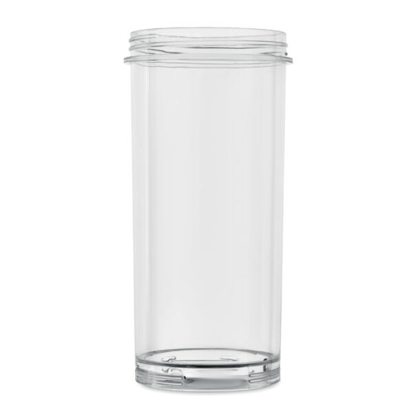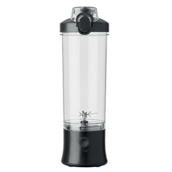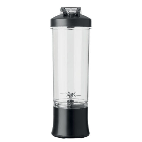 Διαφημιστικό Φορητό Μπλέντερ για smoothie κατασκευασμένο από πλαστικό PCTG με εκτύπωση των στοιχείων της επιχείρησής σας. Διαθέτει καπάκι με άνοιγμα με κουμπί, κινητήρα 18.000 στροφών, επαναφορτιζόμενη μπαταρία 1200mAh και καλώδιο Type-C με απόληξη σε USB-A. Διαθέτει ένα επιπλέον βιδωτό καπάκι και θηλιά μεταφοράς. Χωρητικότητα: 600ml.