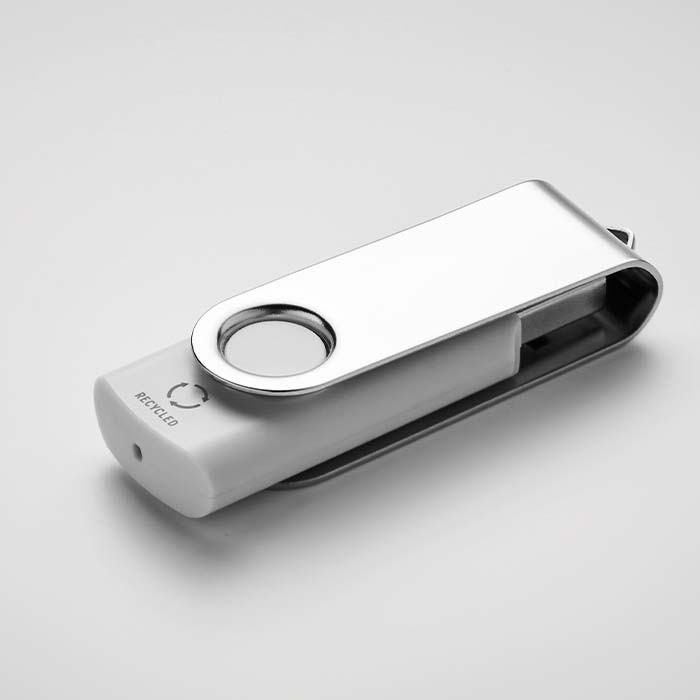 Διαφημιστικό USB Stick 2.0 & 3.0 με σώμα κατασκευασμένο από ανακυκλωμένο πλαστικό ABS και περιστρεφόμενο μεταλλικό κάλυμμα με εκτύπωση του σχεδίου και των στοιχείων της επιχείρησής σας. Διατίθεται στις παρακάτω διαθέσιμες χωρητικότητες: 1GB, 2GB, 4GB, 8GB, 16GB, 32GB, 64GB.