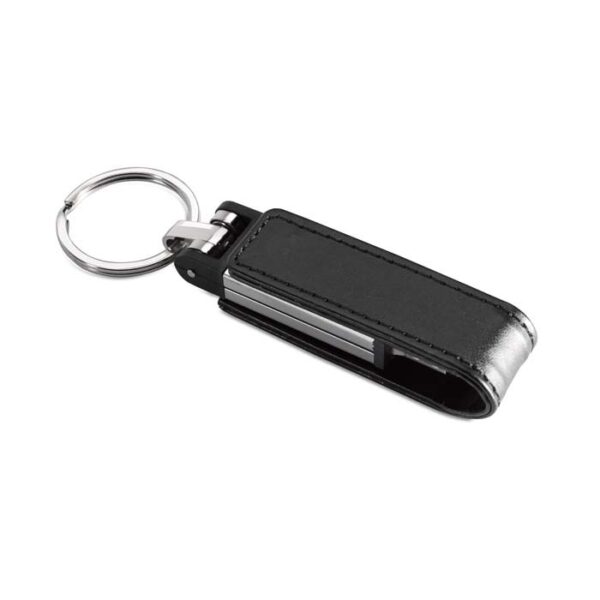 Διαφημιστικό USB Stick με σώμα από σκληρό μέταλλο και λεπτομέρειες από δέρμα με εκτύπωση του σχεδίου και των στοιχείων της επιχείρησής σας. Διαθέτει δερμάτινο κάλυμμα ασφαλείας με μαγνητικό κλείσιμο και κρίκο μπρελόκ. Διατίθεται στις παρακάτω διαθέσιμες χωρητικότητες: 1GB, 2GB, 4GB, 8GB, 16GB, 32GB, 64GB.