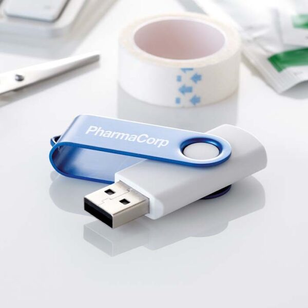 Διαφημιστικό USB Stick 2.0 & 3.0 σε κλασσικό σχέδιο με σώμα από πλαστικό ABS και περιστρεφόμενο κλιπ από αλουμίνιο με εκτύπωση του σχεδίου και των στοιχείων της επιχείρησής σας. Διατίθεται στις παρακάτω διαθέσιμες χωρητικότητες: 1GB, 2GB, 4GB, 8GB, 16GB, 32GB, 64GB.