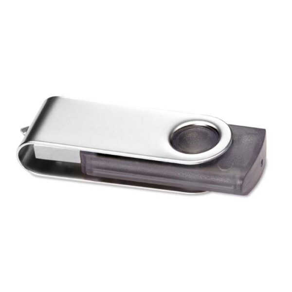 Διαφημιστικό USB Stick 2.0 & 3.0 με σώμα από ημιδιαφανές πλαστικό ABS και μεταλλικό περιστρεφόμενο κλιπ με εκτύπωση του σχεδίου και των στοιχείων της επιχείρησής σας. Διατίθεται στις παρακάτω διαθέσιμες χωρητικότητες: 1GB, 2GB, 4GB, 8GB, 16GB, 32GB, 64GB.