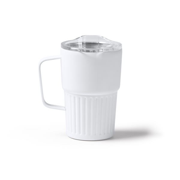 Διαφημιστική Κούπα διπλού τοιχώματος από ανακυκλωμένο ανοξείδωτο ατσάλι με σχέδιο λοξότμησης και μεταξοτυπία ή χάραξη laser των στοιχείων της επιχείρησής σας. Διάφανο καπάκι ασφαλείας με στόμιο πόσης. Χωρητικότητα: 450ml.