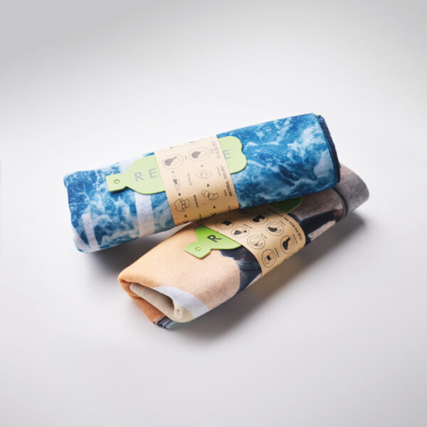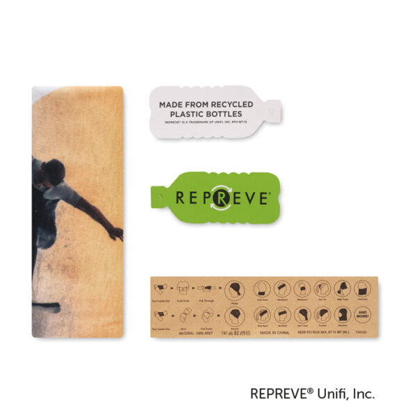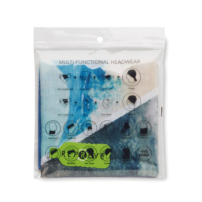 Διαφημιστική Λαιμουδιέρα πολυλειτουργική από ανακυκλωμένο πολυεστέρα 130gsm με εκτύπωση του σχεδίου και των στοιχείων της επιχείρησής σας. Μπορεί να λειτουργήσει ως κασκόλ, αλλά και ως μπαντάνα ή κορδέλα για το κεφάλι.