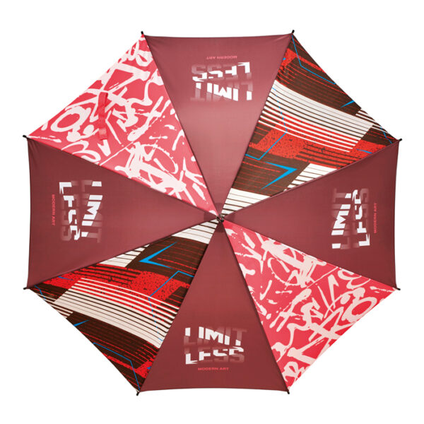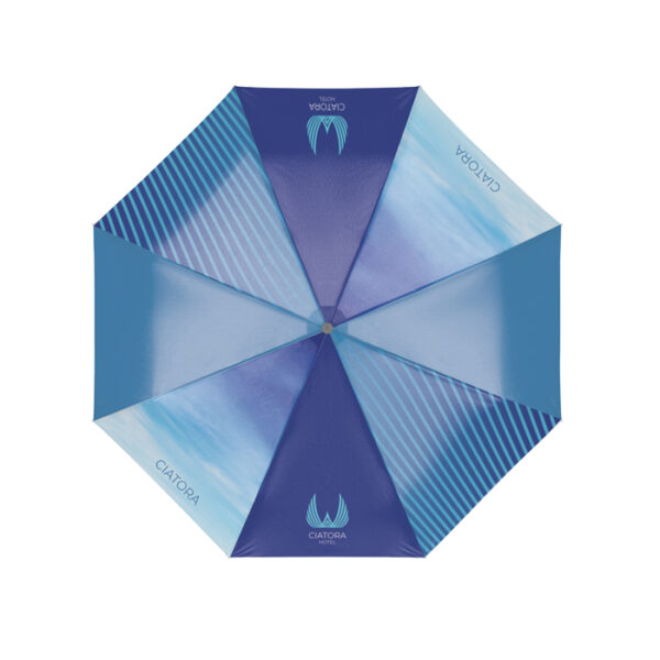 Διαφημιστική Ομπρέλα αντιανεμική, κατασκευασμένη από ίνες υαλοβάμβακα, με μεταλλικό σκελετό και λαβή από πλαστικό EVA με εκτύπωση του σχεδίου και των στοιχείων της επιχείρησής σας. Χειροκίνητο άνοιγμα. Διάμετρος ανοίγματος: 30 ίντσες.