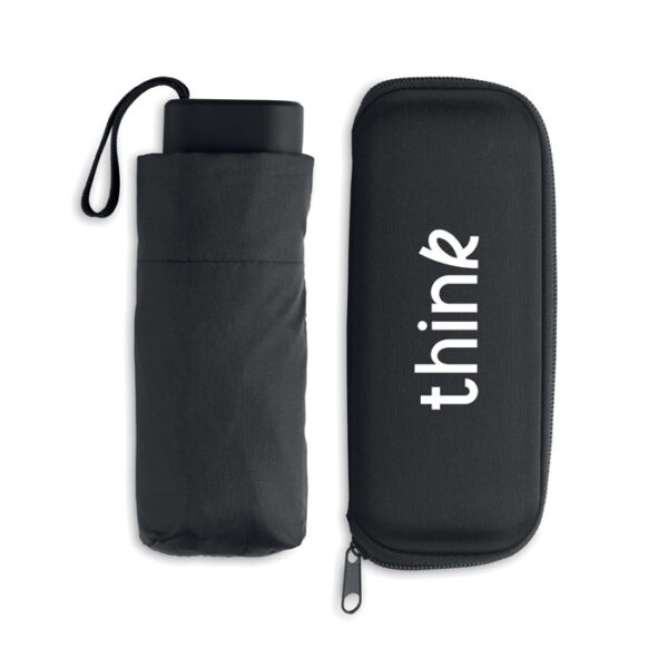 Διαφημιστική Ομπρέλα αντιανεμική από ύφασμα pongee πολυεστέρα 190Τ με αναδίπλωση 5 σημείων και μεταξοτυπία ή θερμομεταφορά ή και ψηφιακή θερμομεταφορά των στοιχείων της επιχείρησής σας. Χειροκίνητο άνοιγμα / κλείσιμο. Διάμετρος ανοίγματος: 47,5cm.