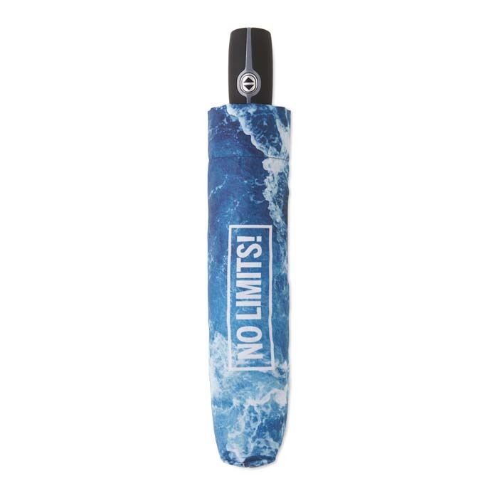 Διαφημιστική Ομπρέλα πτυσσόμενη / αναδιπλούμενη και αντιανεμική, κατασκευασμένη με ύφασμα από πολυεστέρα και ίνες υαλοβάμβακα με εκτύπωση του σχεδίου και των στοιχείων της επιχείρησής σας. Αυτόματο άνοιγμα και κλείσιμο. Διάμετρος ανοίγματος: 27 ίντσες.